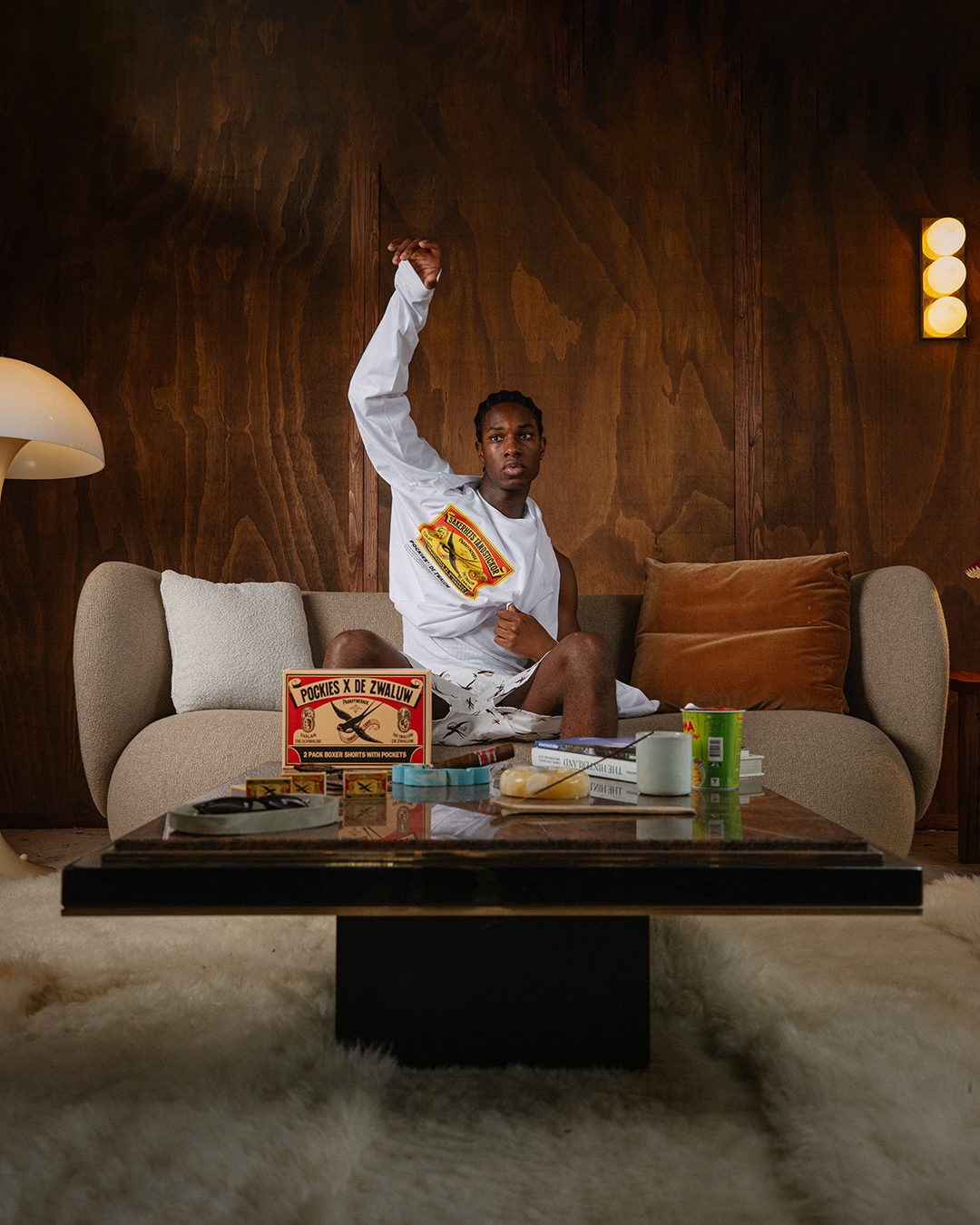 De collectie bevat een t-shirt met het herkenbare design van De Zwaluw, in een cleane zwart/wit graphic. Daarnaast brengen beide merken een longsleeve met een backprint van de iconische luciferdoos. Gezien de oorsprong van Pockies konden boxershorts met zakken niet ontbreken. Deze zijn verkrijgbaar als single en 2-pack, de laatste wederom geheel in de stijl van de luciferdoos van De Zwaluw.