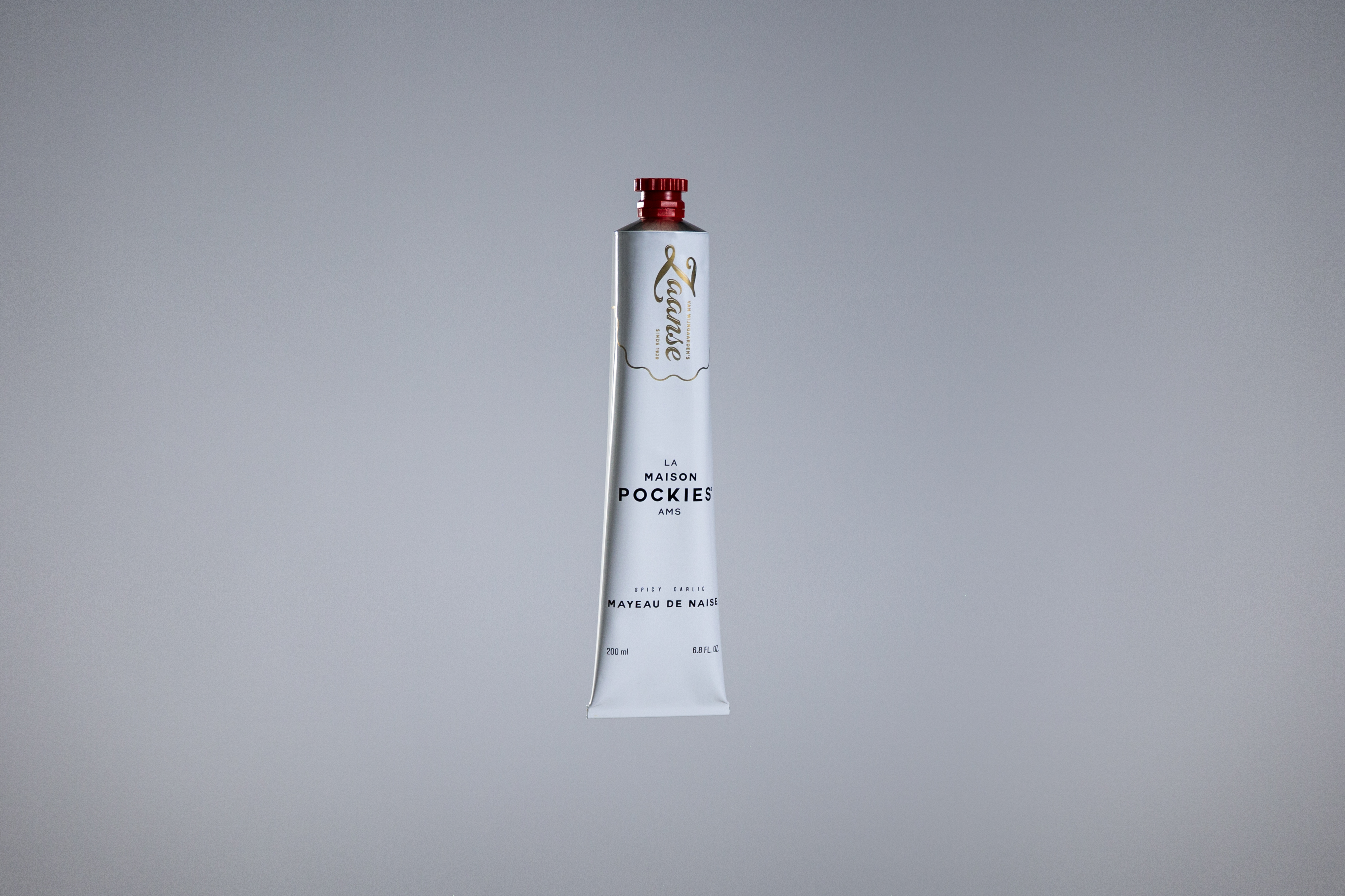 Verpakt in een minimalistische, elegante tube roept Mayeau de Naise associaties op van marmeren salons en kaarsverlichte soirées, terwijl het tegelijkertijd trouw blijft aan het vertrouwde karakter van de geliefde Nederlandse mayonaise van Zaanse. De verpakking is afgewerkt met de iconische rode dop, ditmaal gecombineerd met een goudkleurig Zaanse-logo.